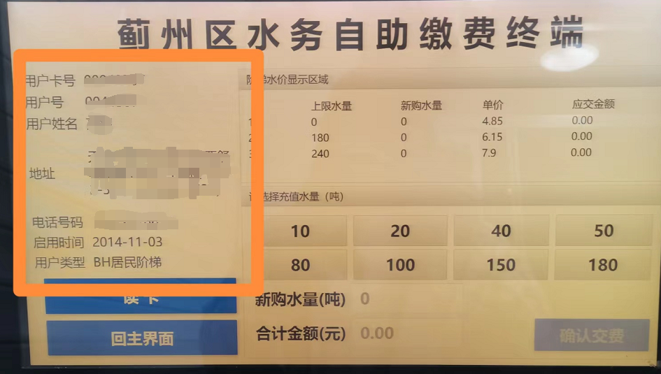 2、繳費機繳費:將水卡放到讀卡區(qū),如圖